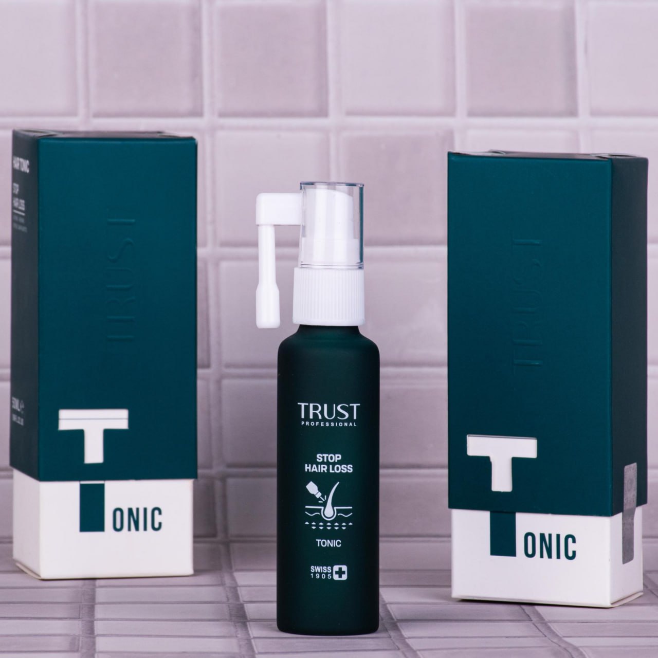 این محصول قابل استفاده بر هر دو الگوی ریزش موی زنانه و مردانه بوده و همچنین مکانیزم اثر بخشی محصول به گونهای است که پس از قطع مصرف عوارض محصولات حاوی ماینوکسیدیل را ندارد. همچنین اکتیوهای تخصصی تونیک تراست باعث بهبود گردش خون در پوست سر شده و شرایط مناسبی برای تغذیه کافی ریشه مو فراهم کرده و موجب تحریک گردش خون مویرگی و تحریک رشد موی سر میشود. ویتامینهای مورد مصرف در تونیک تراست نیز اثرات منحصربهفردی در فولیکول و تار مو دارد؛